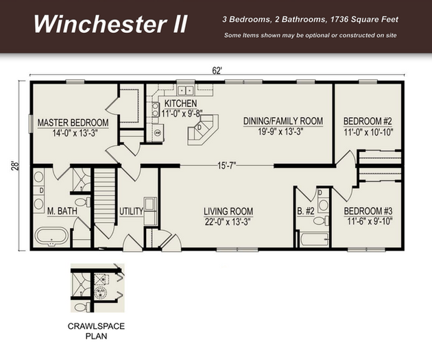 The Winchester II by Heckaman Homes offers 1,736 square feet of well-designed living space. This modular home features three bedrooms and two bathrooms, including a master bathroom with a double vanity, shower, and tub. Its large open floor plan is perfect for family living and entertaining. Experience the ideal combination of style and comfort with the Winchester II.